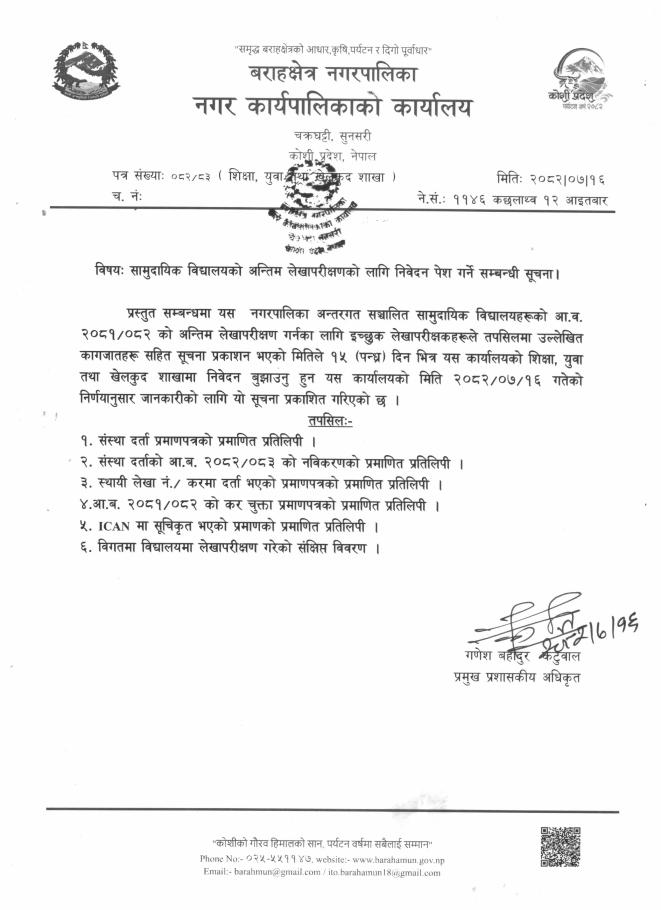 » अन्तिम लेखापरिक्षणका लागि निवेदन पेश गर्ने सम्बन्धी सूचना