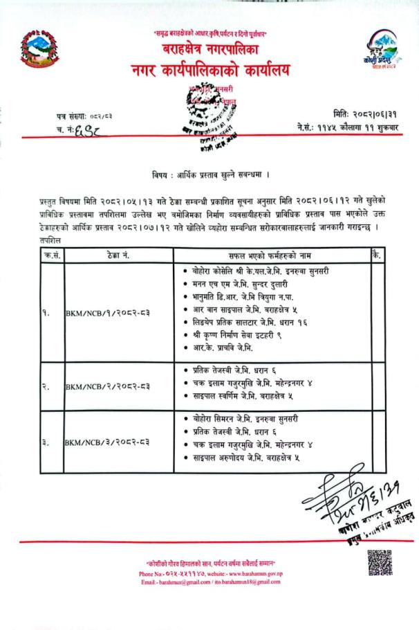 » आर्थिक प्रस्ताव खुल्ने सम्बन्धी सूचना