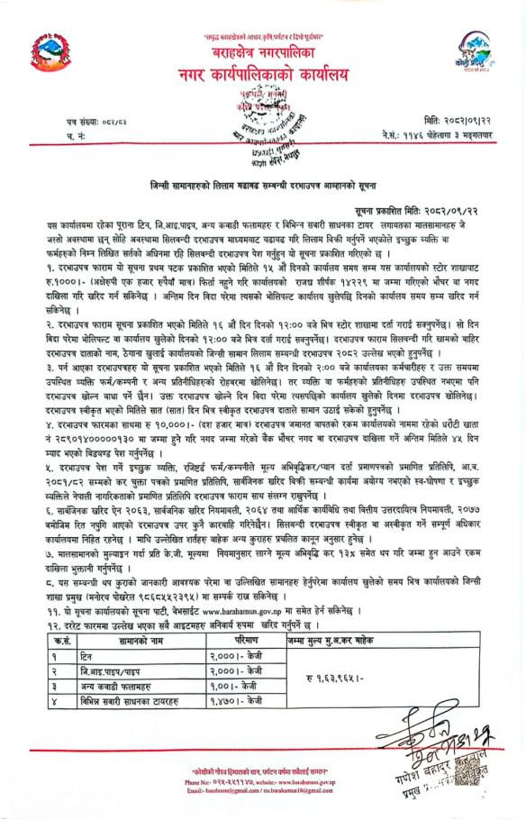 जिन्सी सामानहरुको लिलाम सम्बन्धी सूचना