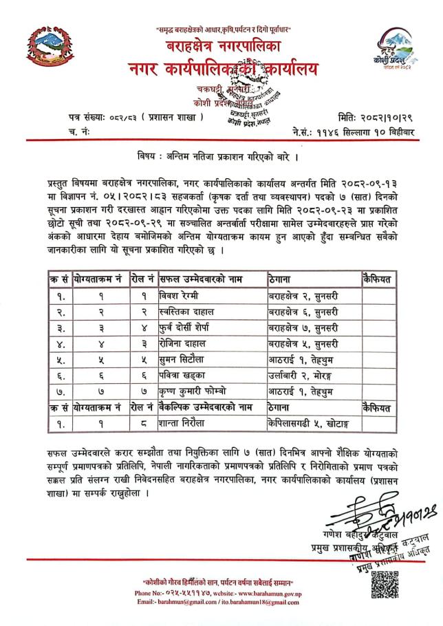 बराहक्षेत्र नगरपालिका,नगर कार्यपालिकाको कार्यालय , चक्रघट्टी, सुनसरी, कोशी प्रदेश ,नेपाल