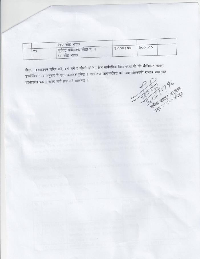 राजस्व सम्बन्धी ठेक्काको सूचना