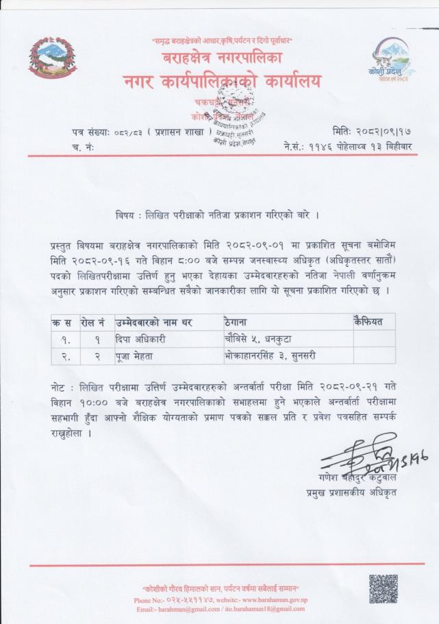 » लिखित परिक्षाको नतिजा प्रकाशन सम्बन्धमा ।