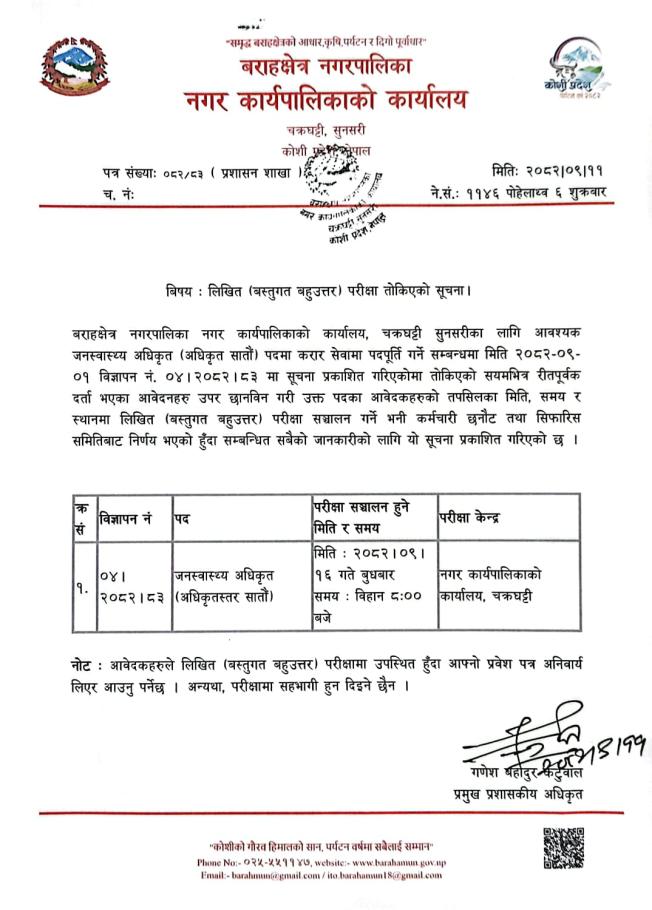 बराहक्षेत्र नगरपालिका,नगर कार्यपालिकाको कार्यालय , चक्रघट्टी, सुनसरी, कोशी प्रदेश ,नेपाल