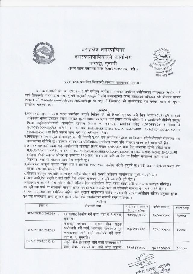 ठेक्का BKM/NCB/01/2082-83 मुचुल्का