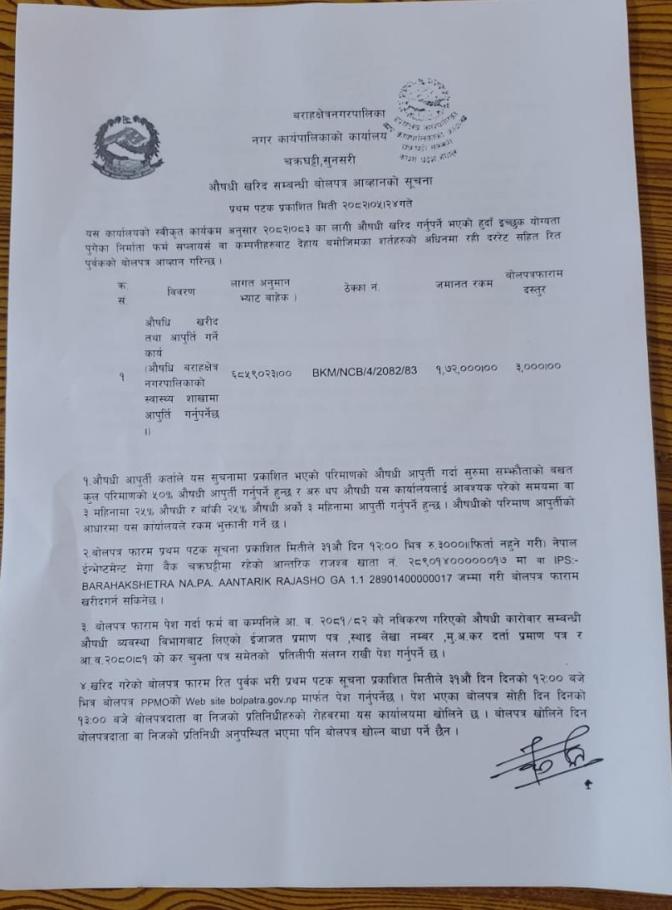 सार्वजनिक खरिद/बोलपत्र सूचना