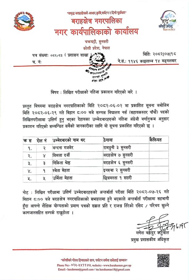 » लिखित परिक्षाको नतिजा र अन्तर्वाता सम्बन्धी सूचना (बिद्यालय नर्स)